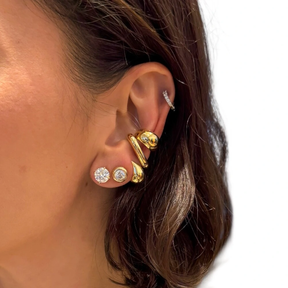 Brinco Solitario Cristal Ponto de luz prata925 com banho de ouro18k ( escolha o tamanho )