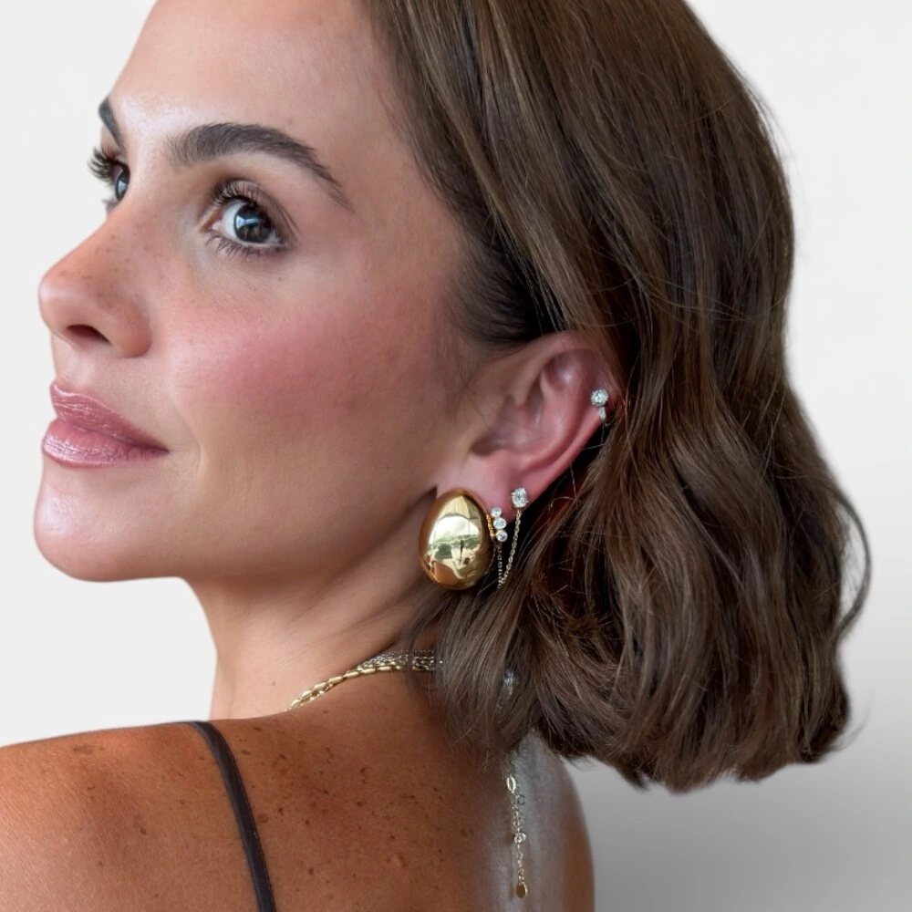Modelo leve, com design organico, minimalista e protagonista no look . Por ser liso, combina facilmente com diferentes estilos de look e realça ainda mais os traços.