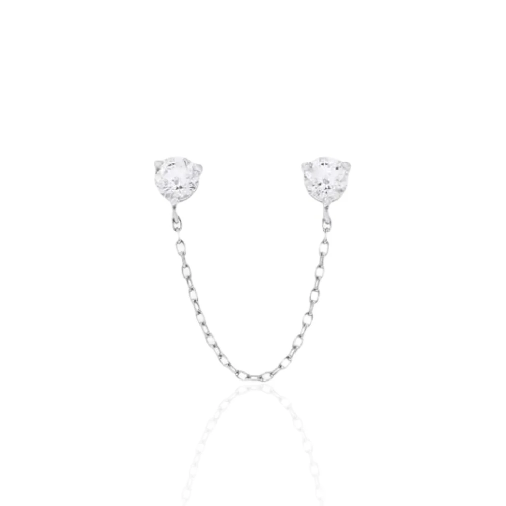Brinco para Dois Furos – Solitários de 5 mm com Fio em Prata 925 (Unitário)