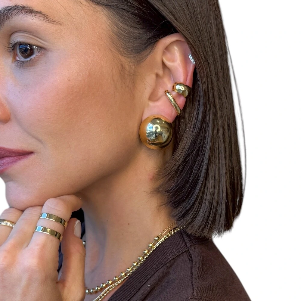 Confeccionado com banho de ouro 18k, possui acabamento polido e brilho sofisticado, sendo uma peça versátil para usar sozinha ou em composição com outros brincos, criando um mix cheio de personalidade.