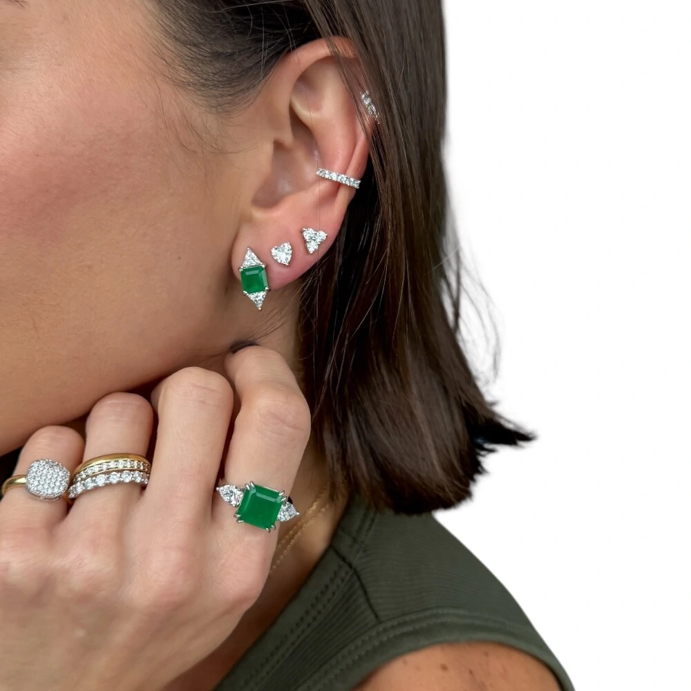 Seu design combina a imponência do formato quadrado com o detalhe em trillion, criando uma peça luxuosa e marcante. Ideal para mulheres que valorizam os grandes clássicos da joalheria, sem abrir mão da modernidade.
