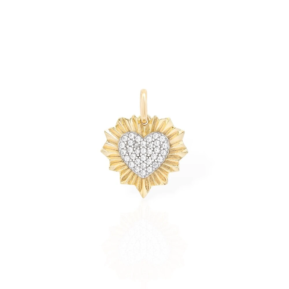 Pingente Coração Raios com Miolo Cravejado Prata 925 com Banho de Ouro 18k – 1cm7mm