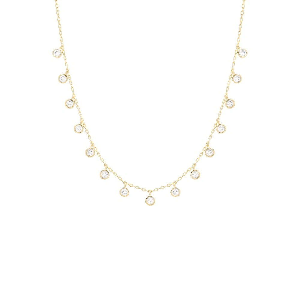 Delicado e cheio de personalidade, este colar/choker combina o charme boho com o brilho sofisticado dos solitários. As pedrinhas penduradas, com cravação inglesa, proporcionam um brilho único e elegante, destacando-se tanto no uso individual quanto em combinação com outros colares para um mix moderno e estilos