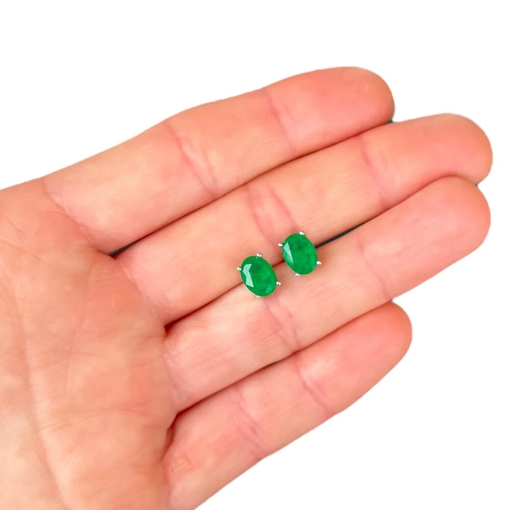 Brinco Oval com Pedra Esmeralda banho de rodio