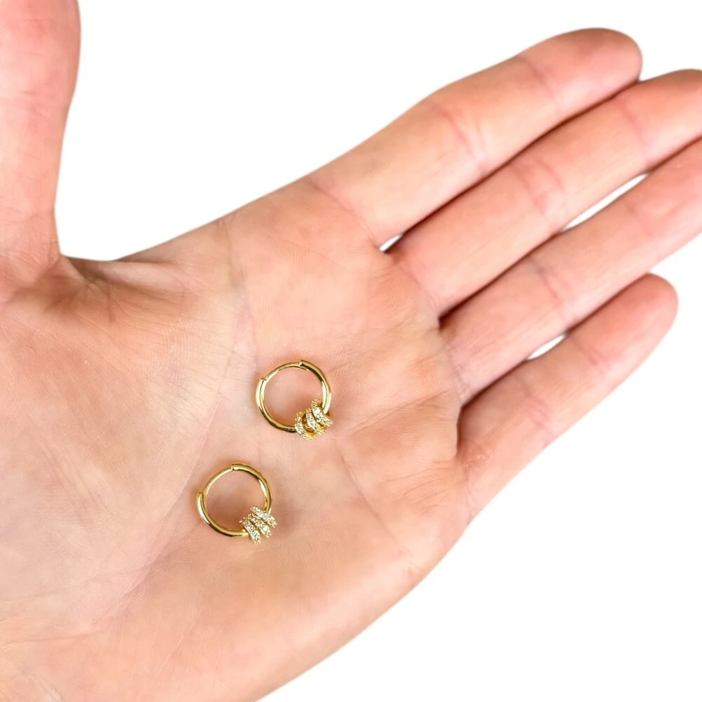 Brinco argola click basic 3 rodinhas cravejadas removíveis