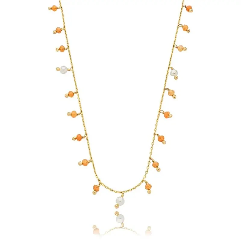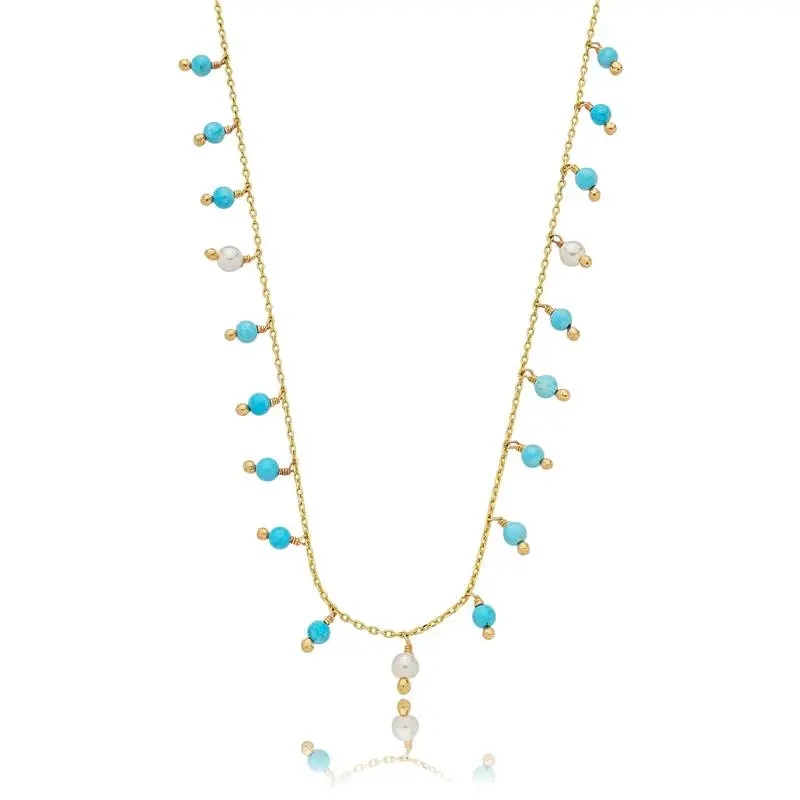 Colar boho esferas delicadas pedras e pérolas ouro18k