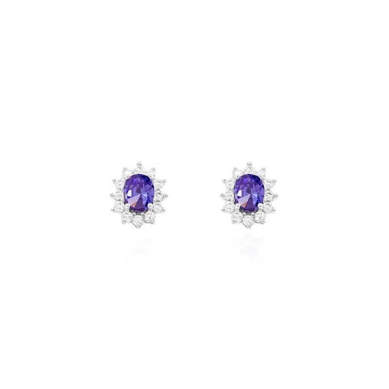 Brinco joia crucifixo safira baguetes com volta cravejada 8mm prata925