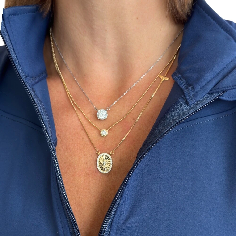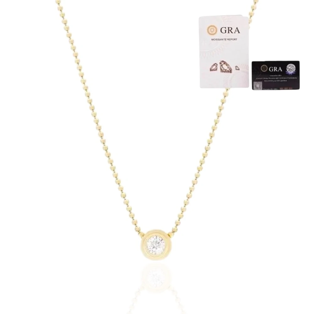 Colar joia solitário moissanite 0.02ct (3.5mm) com corrente bolinhas prata925 ouro18k