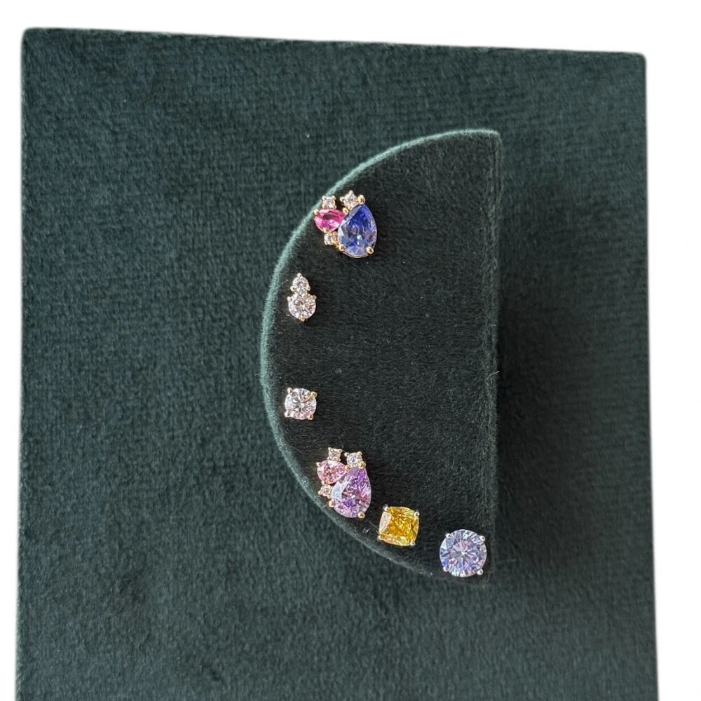 Brinco joia gota com solitários prata925 ouro18k