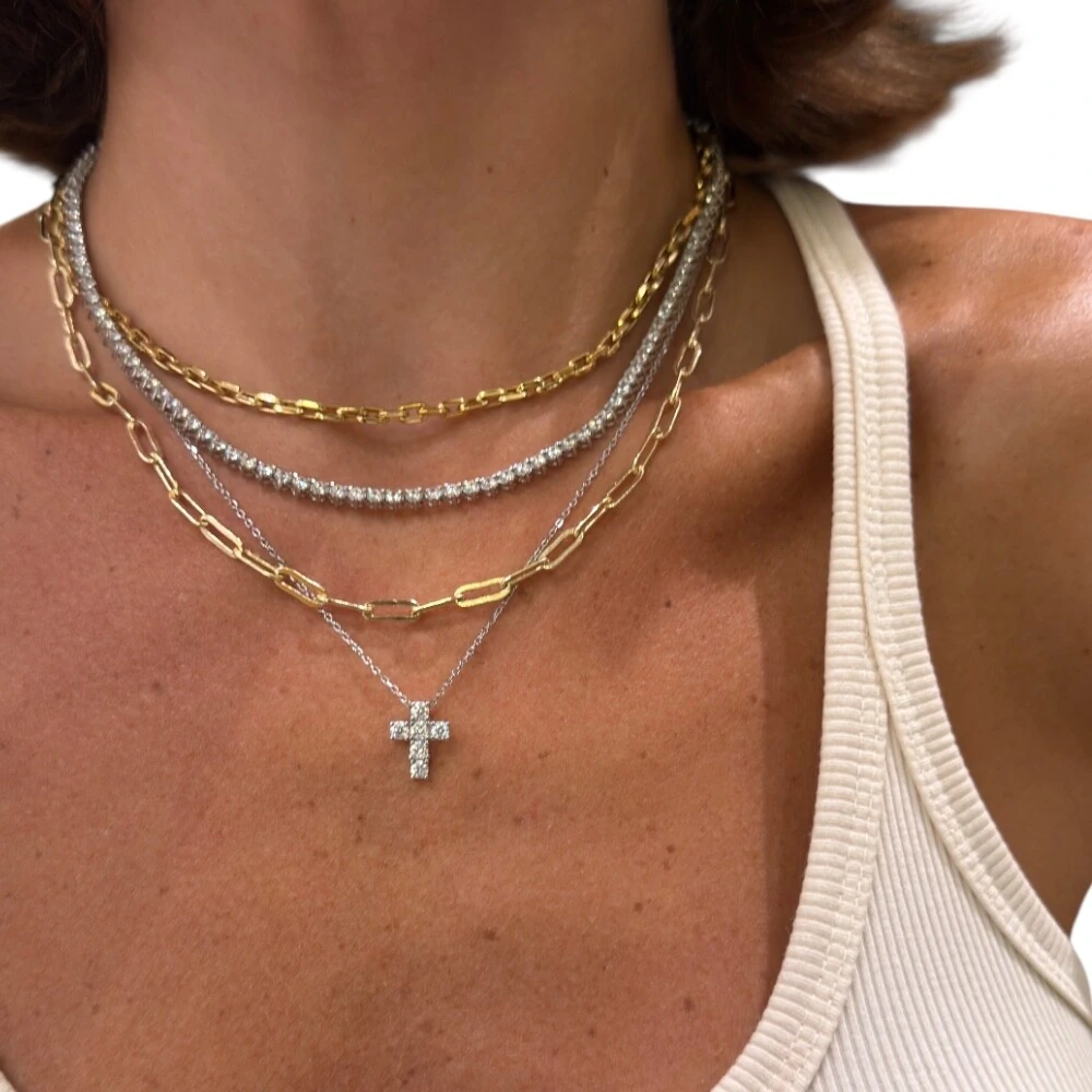 Colar joia crucifixo 12mm moissanite 0.6ct (3mm) prata925