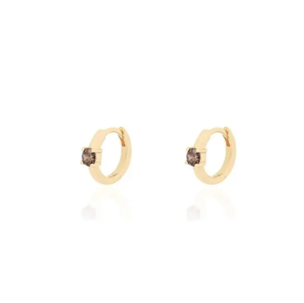 Brinco argola joia click solitário brown 1cm prata925 ouro18k