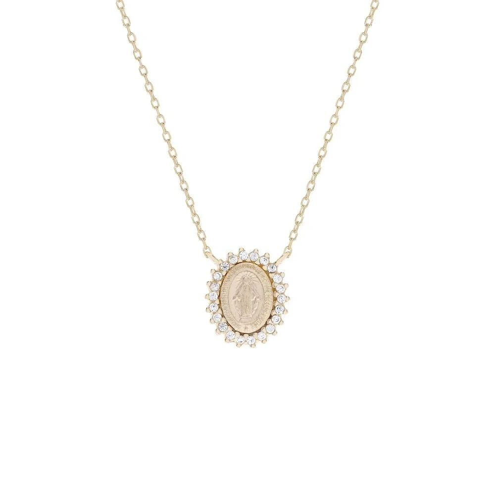 Colar joia medalha nossa senhora das graças volta cravejada 1cm2mm moissanite 0.11ct prata925 ouro18k
