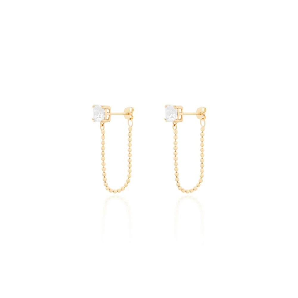 Delicado, classico e com toque de modernidade, este brinco joia solitario cushion com fio de bolinhas traz um design elegante com movimento sutil. A pedra central no formato cushion garante brilho sofisticado, enquanto o fio de bolinhas adiciona leveza e personalidade ao look.
