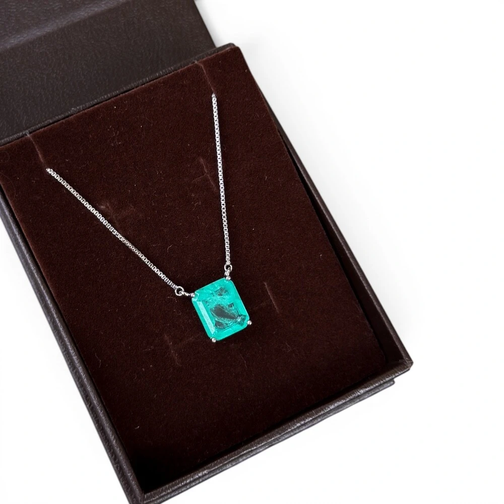 Colar retângulo esmeralda colombiana corrente veneziana rodio