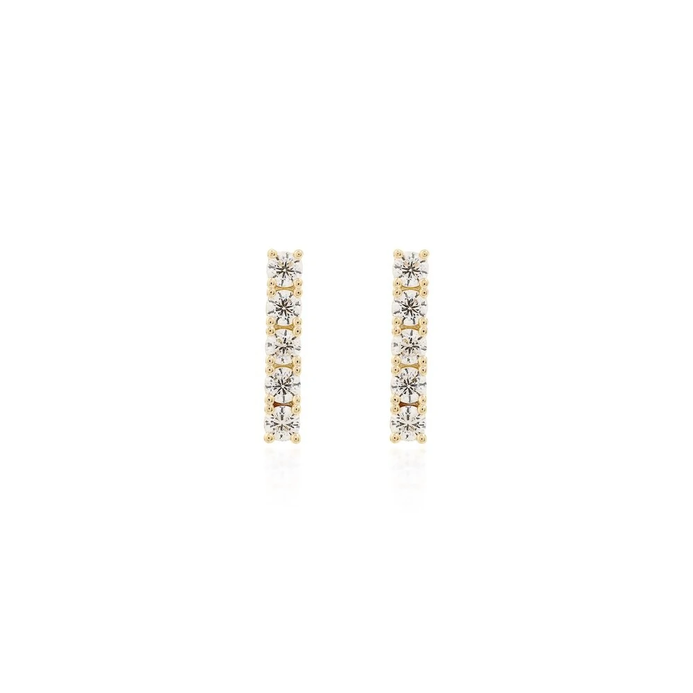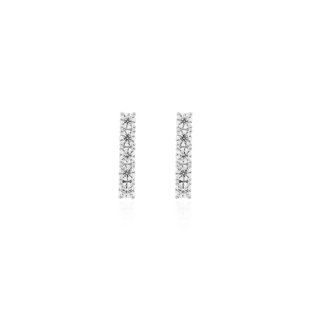 Classico, elegante e moderno, este brinco joia ear hook em formato palito com solitarios ponto de luz é a escolha perfeita para quem busca sofisticação com leveza. O design com 5 solitarios acompanha o contorno da orelha, criando um efeito alongado e iluminado que valoriza o mix de brincos.